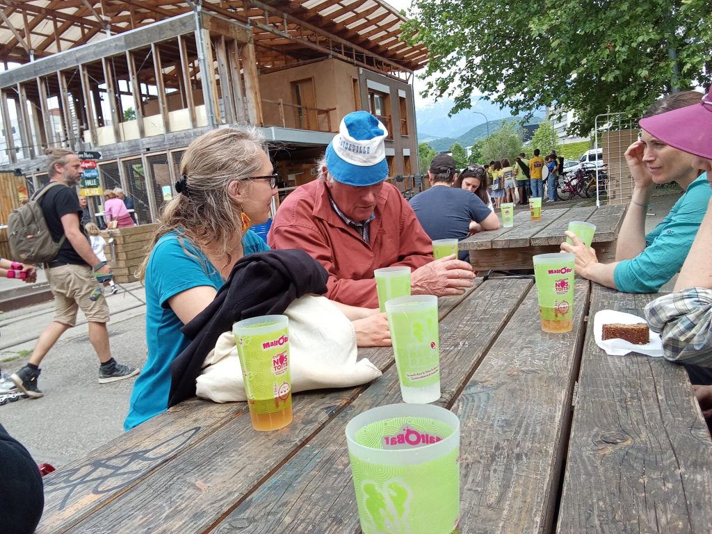 Ils nous ont fait un petit retour d’expérience en photo, en indiquant que si les conditions de projection n’étaient pas totalement satisfaisantes, ils ont quand même fait de belles rencontres, avec des projections futures à envisager dans la région : lycée horticile avec Maud, des réseaux sociaux avec Noémie, des association d’éducation avec Géraldine Siméon, institutrice, etc… Ils regrettent néanmoins de n’avoir croisé aucun·e élu·e de la ville de Grenoble ou du département…