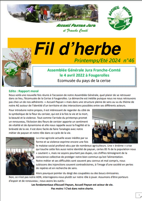 Les nouvelles du journal Fil d’Herbe AP Franche Comté – printemps 2024