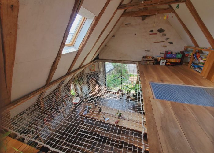 Ce bâtiment, restauré en 2009, vieux de 300 ans, abritait du foin et des vaches. Charmante par son ambiance chaleureuse de bois et pierres apparentes, cette grange nous a permis pendant des années d’accueillir un public familial dans 2 chambres avec salles de bain privatives et une mezzanine très appréciée par les enfants.