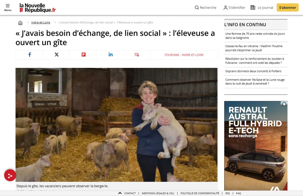 En Centre-Val-de-Loire, Christelle Luijks, adhérente du gîte Les Sen Ciel, a fait l’objet d’un article dans le média La Nouvelle République.