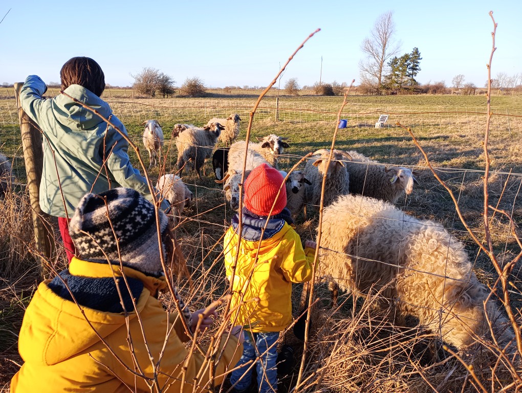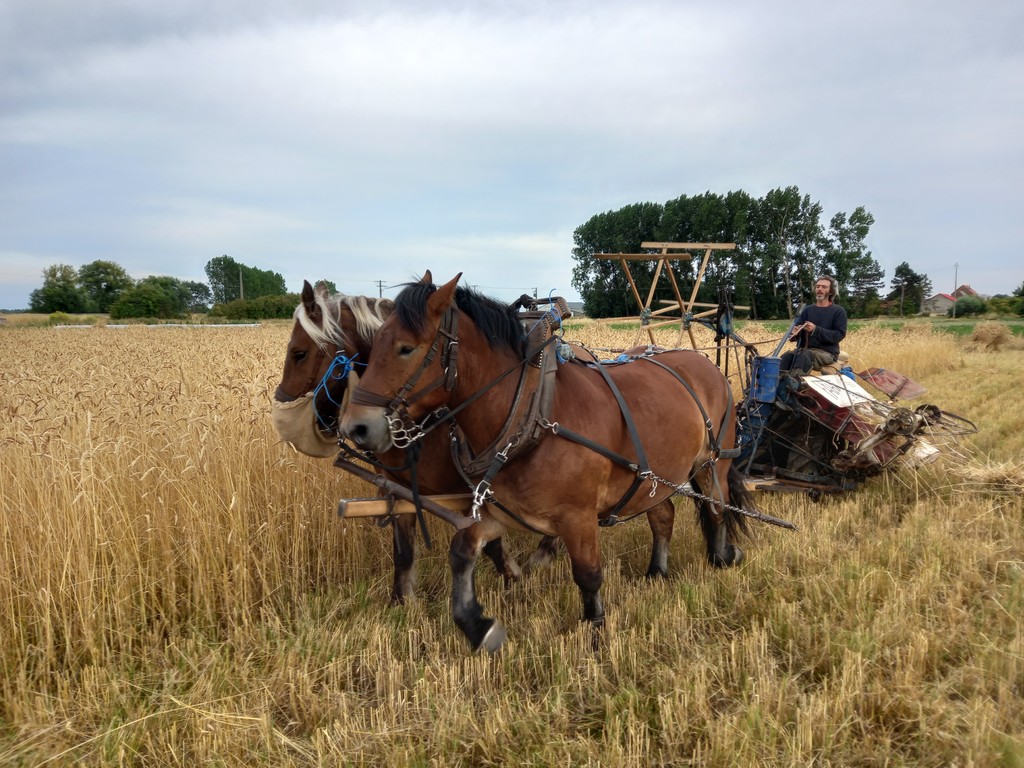 Son activité d’accueil s’appuie aussi sur la ferme attenante, le GAEC des Sabots Communs qui cultivent légumes et céréales, et élèvent des brebis et bœufs en bio, avec l’aide de deux chevaux de trait.