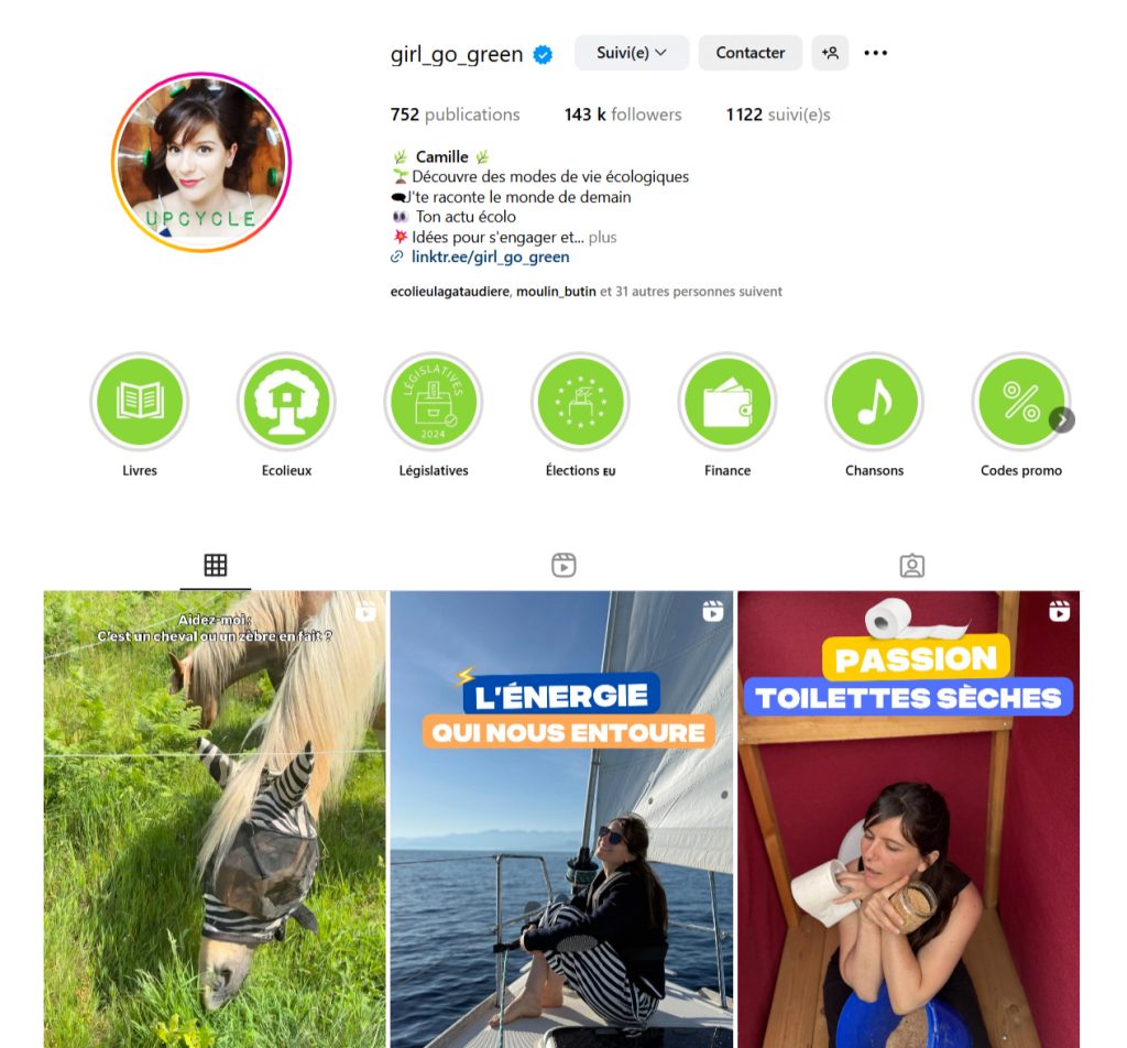 Il faut compter aussi les personnes touchées par les stories sur le compte de Girl Go Green, estimé à plusieurs milliers pour chacune.