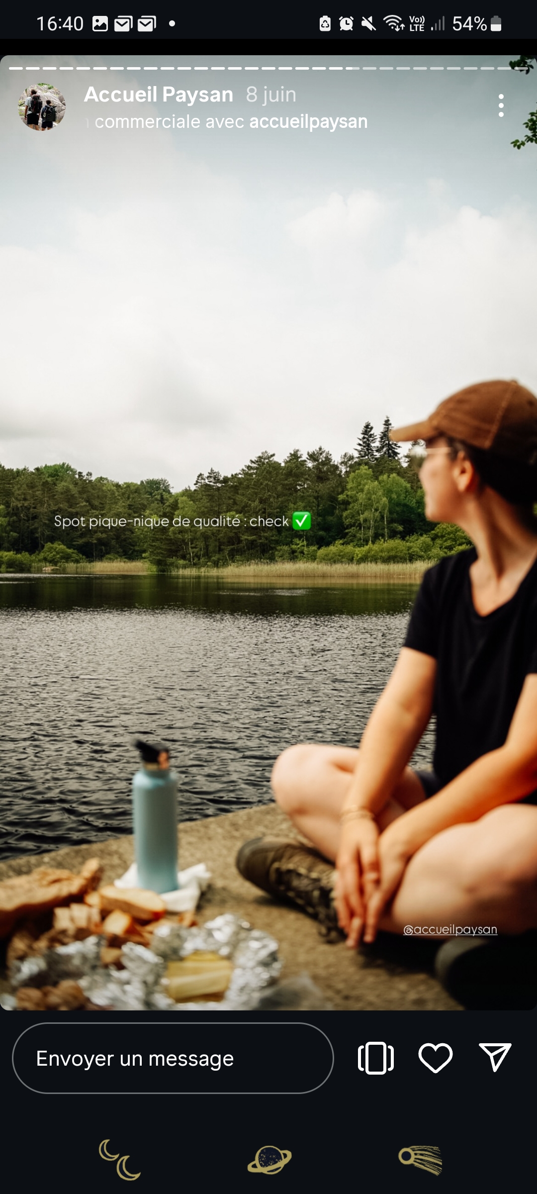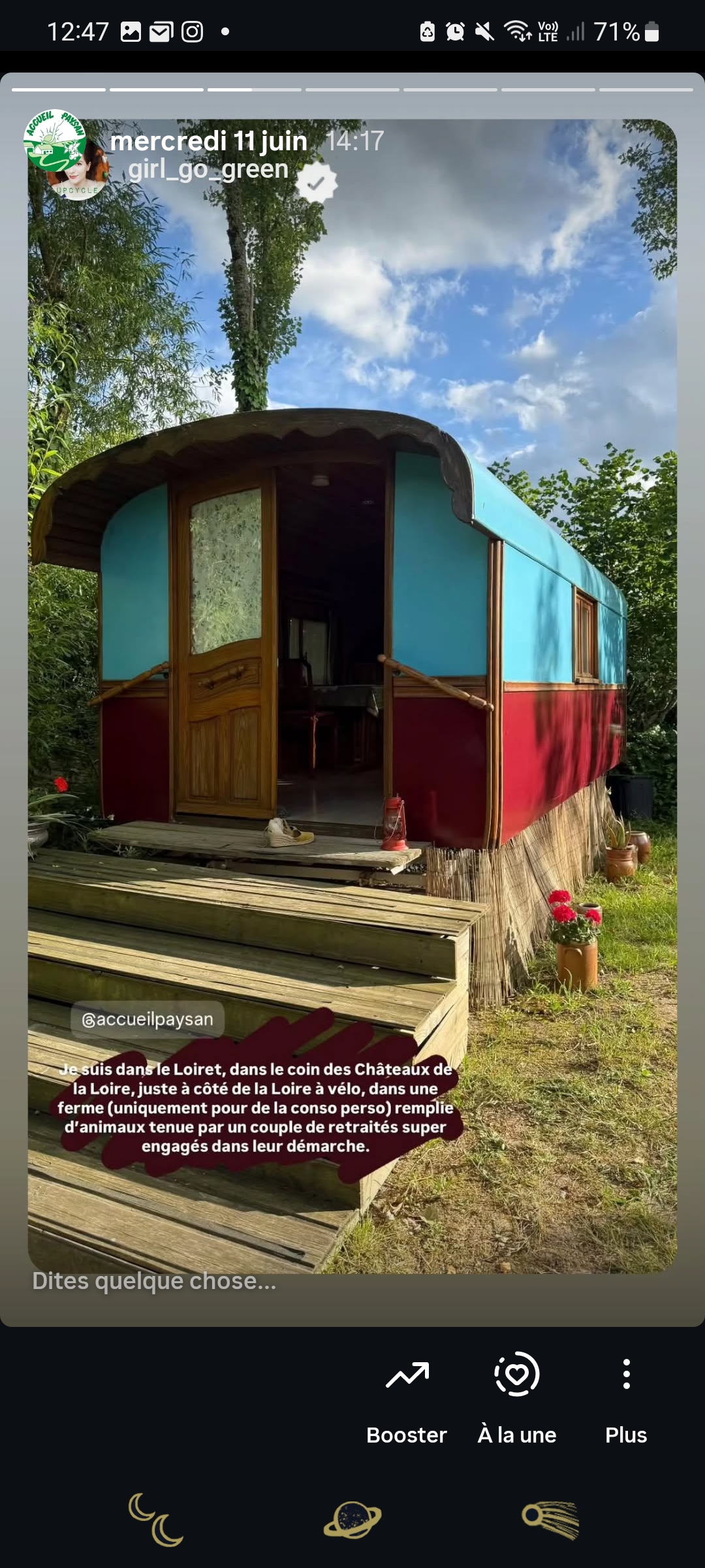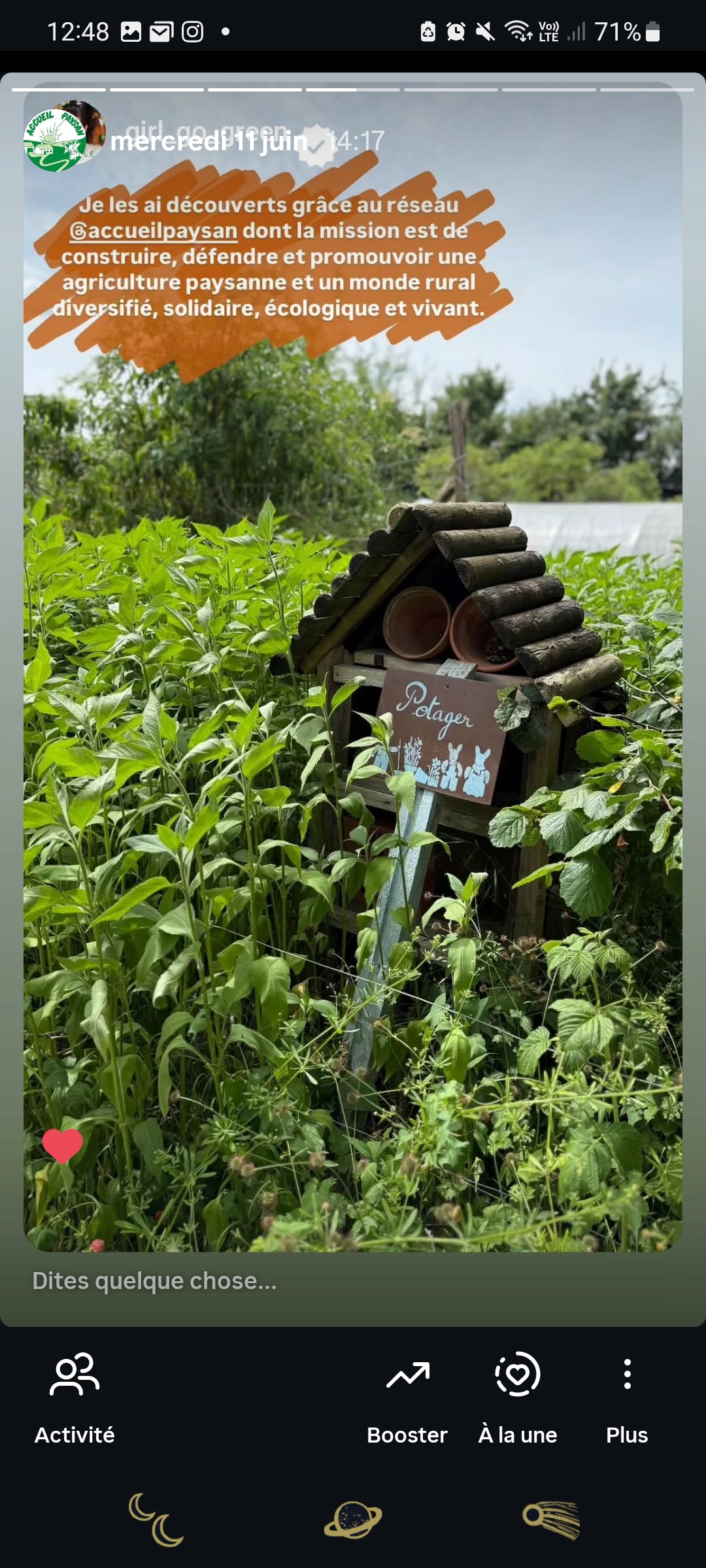 Beaucoup de Stories, (images ou vidéos qui restent disponibles 24h pour les abonnés du compte) qui ont été repartagées sur le compte d’Accueil Paysan.