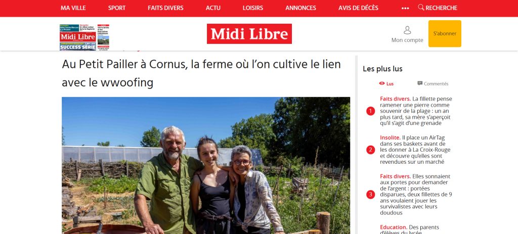 Le Petit Pailler, situé dans l’Aveyron, nous partage l’article dont il a fait l’objet dans le média Midi Libre :