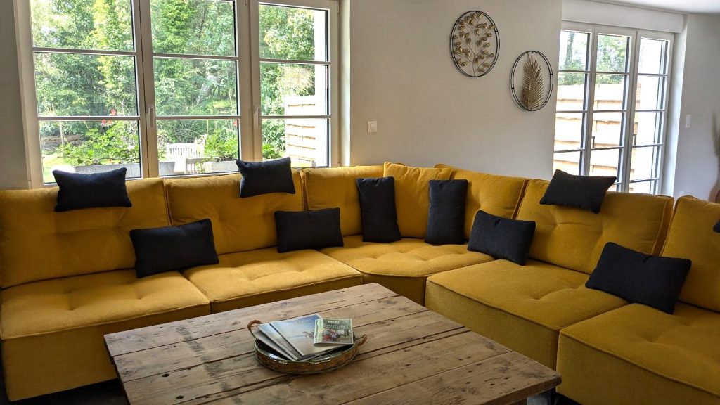 Le gîte de séjour de 12 places a entièrement été refait à neuf. Il se trouve dans la maison attenante à la partie la plus ancienne. Il compte 5 chambres et 3 salles de bain, pour le plus grand confort de leurs hôtes. La salle de séjour très spacieuse est décorée de façon harmonieuse, en partie avec des meubles de récupération restaurés.