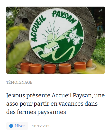 Son article de présentation du réseau Accueil Paysan