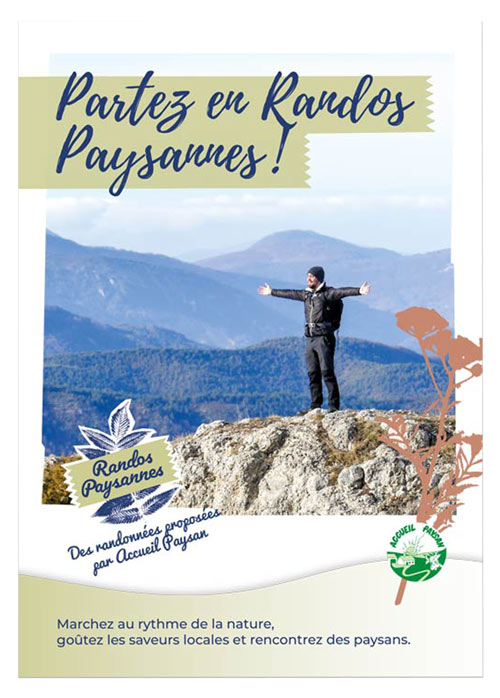 Les Randos Paysannes sont des circuits de marche qui relient plusieurs lieux Accueil Paysan. Selon les territoires, ils sont proposés en autonomie à l’aide d’un livret guide, ou sous forme d’événement avec les adhérent·es. Il existe aujourd’hui une dizaine de Randos Paysannes proposées aux marcheurs. Ces Randos sont un excellent moyen d’apporter de la visibilité à l’entièreté du réseau, car elle permet à un public différent de découvrir Accueil Paysan. Il est donc important pour toutes les associations locales et les membres de participer à cette promotion.