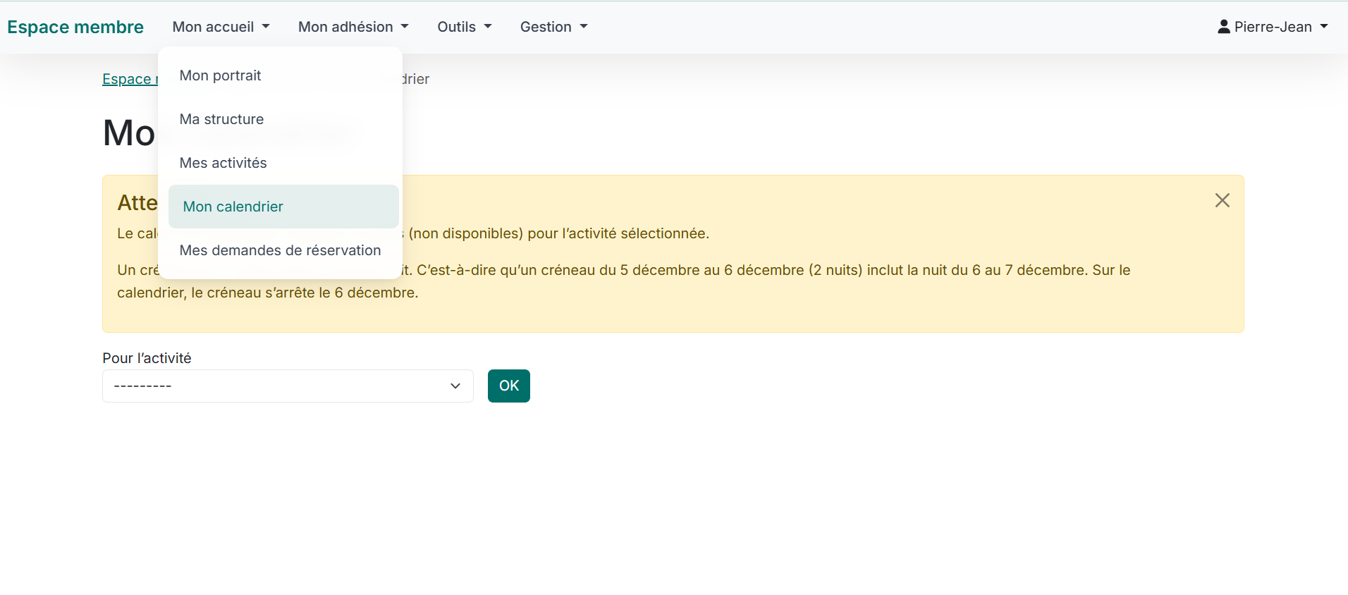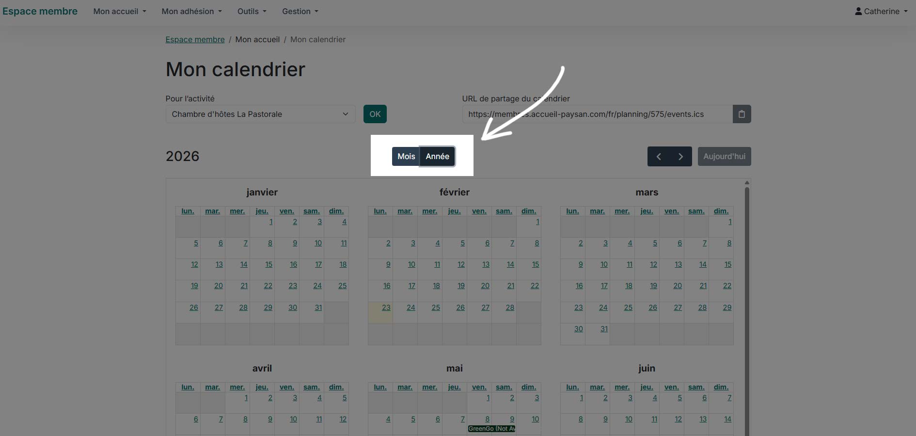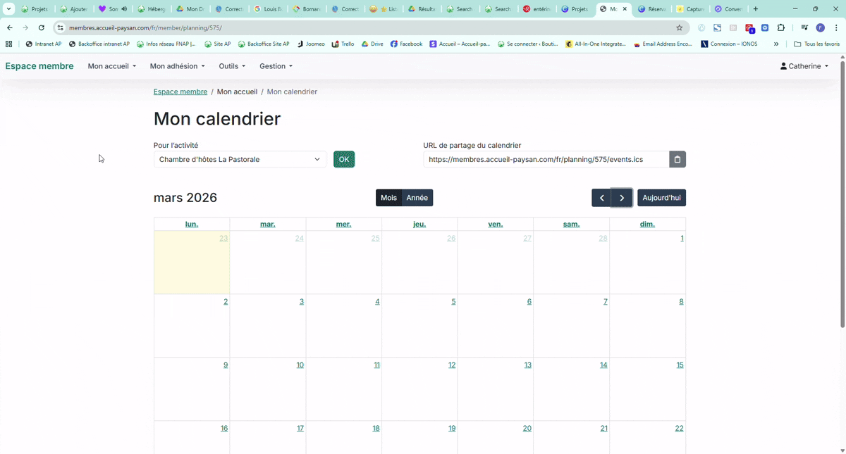 ✅ Dans votre espace membre, via le menu haut, rendez-vous sur Mon accueil > Mon calendrier