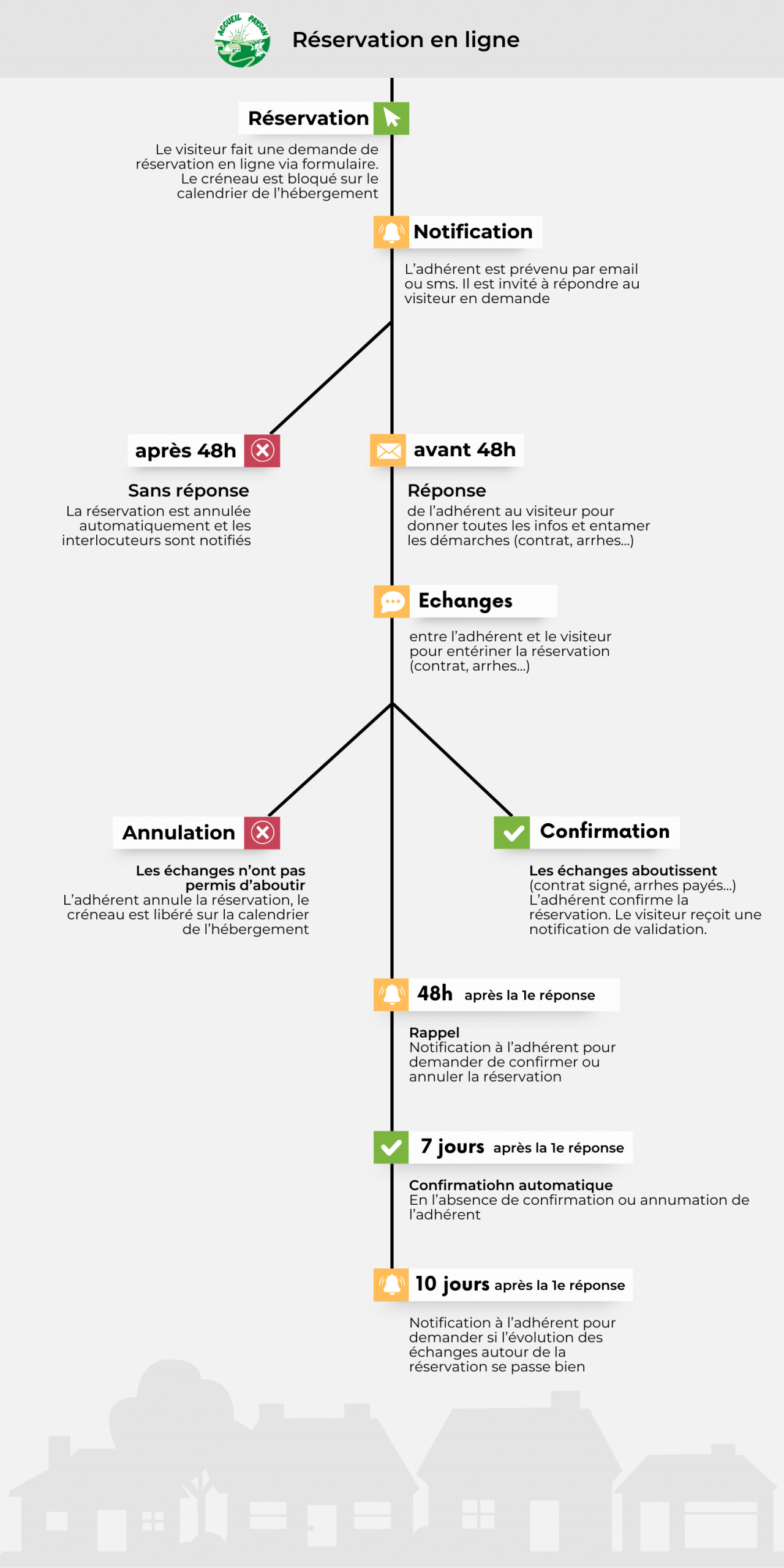 les visiteurs pourront pré-réserver votre hébergement durant 48h en attendant une confirmation de votre part. Vous serez prévenu par mail et/ou par sms avec la liberté d’accepter ou non la demande.