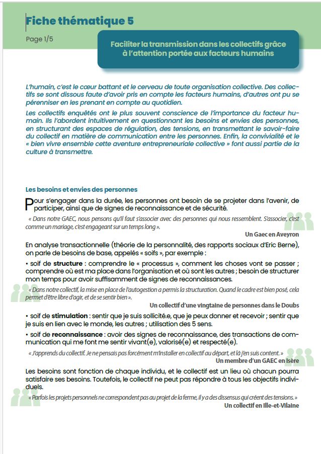 Fiche thématique 5 – Faciliter la transmission : l’attention portée aux facteurs humains