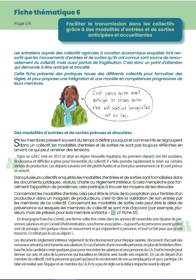 Cette fiche a été rédigée dans le cadre du projet Recoltera, destinée à des accompagnateurs-trices comme base de réflexion dans le cadre d’une transmission au sein de collectifs. Elle aborde comment des modalités d’entrées et de sorties anticipées et accueillantes facilitent la transmission.
